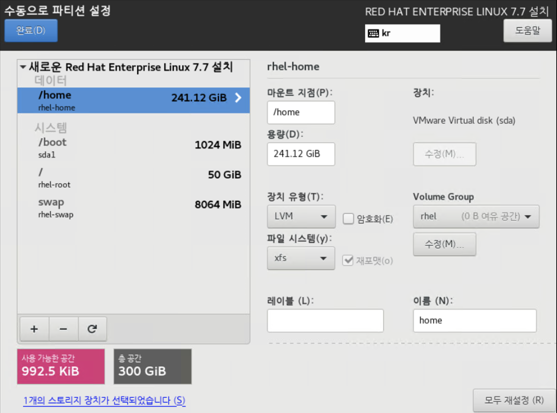 기본대로 /home에 Disk를 많이 할당해도 됩니다.