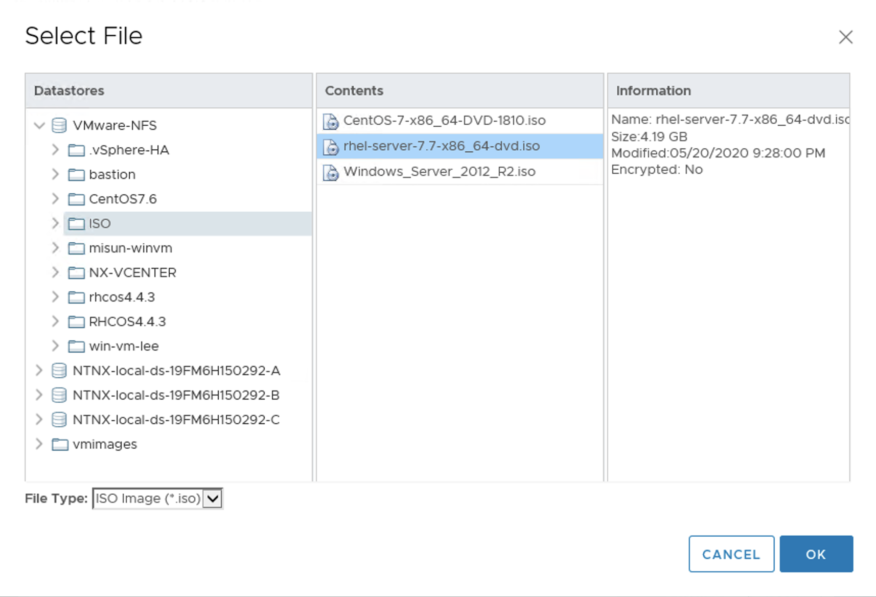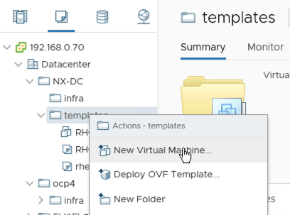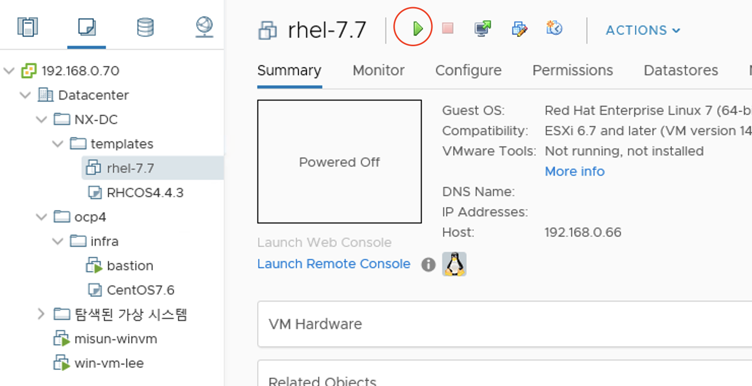 사전에 RHEL OS의 iso이미지는 미리 vCenter Datastorage에 올려놓으셔야 합니다.