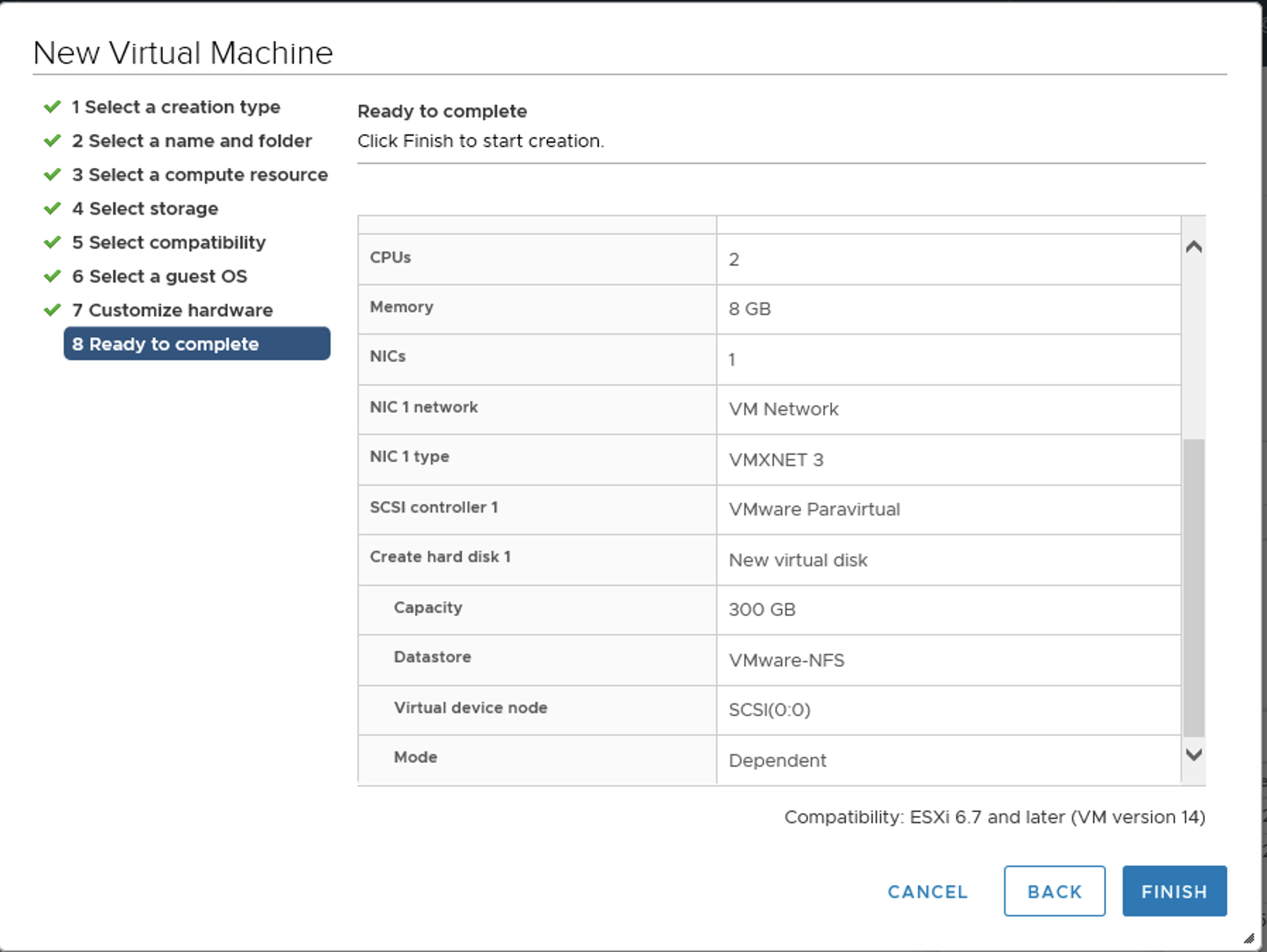 Disk Provisioning은 'Thin'으로 바꾸십시오.