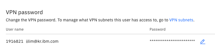 - User details탭에서 VPN암호를 설정합니다. 암호는 연필 모양 눌러 지정합니다. User name도 다른 곳에 잘 복사해 둡니다.