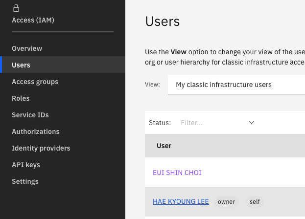 - [Users]메뉴를 선택하고, 본인 이름을 클릭합니다.
