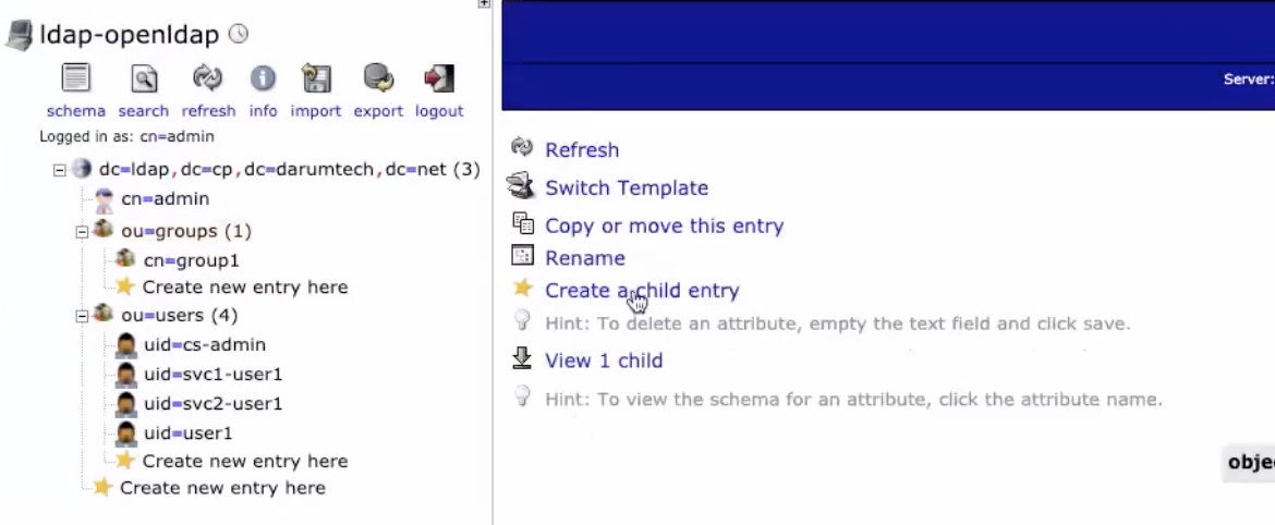 ou=groups선택 > Create a child entry를 클릭 합니다.