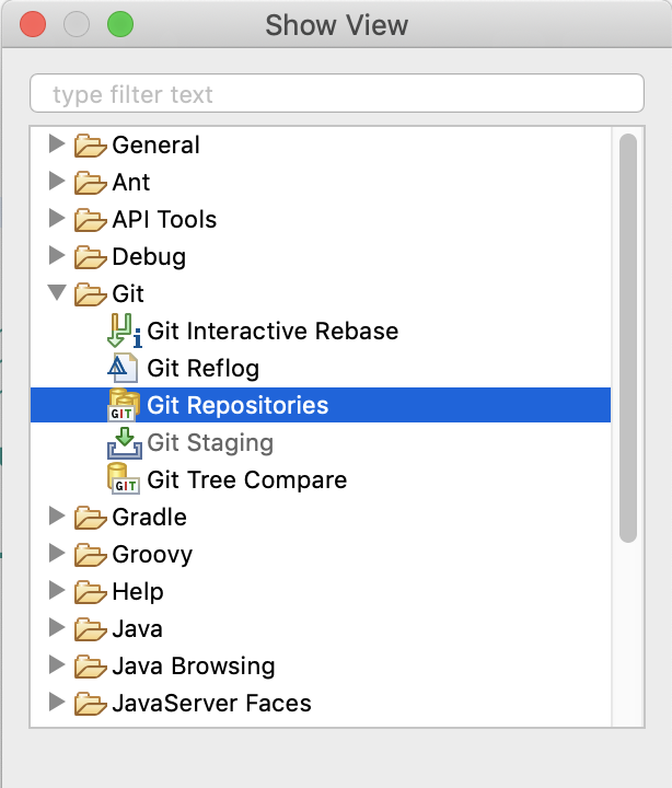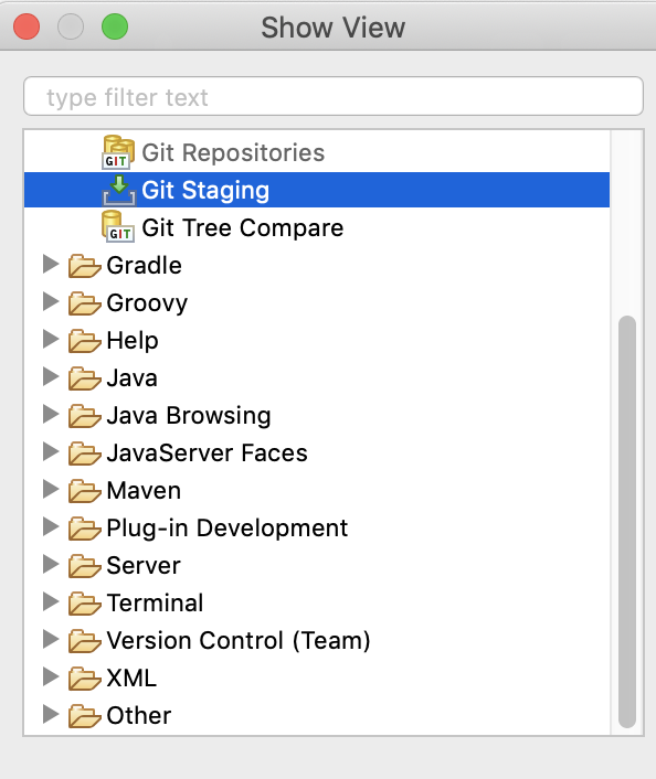 Window > Show view > Other 클릭하고, Git Staging 추가