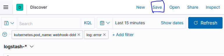 Field 'kubernetes.pod_name'을 선택하고, 검색할 어플리케이션 이름을 지정 합니다.
