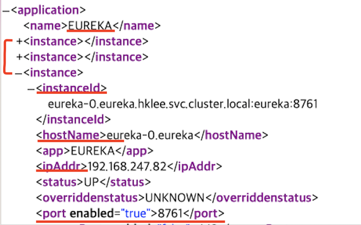 아래 예제에서는 eureka-2로 분기되었기 때문에 다른 peer인 eureka-0과 eureka-1이 나온것입니다.