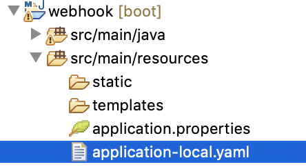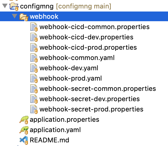 webhook-dev.yaml, webhook-common.yaml, application.properties, application.yaml