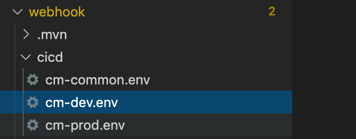 - webhook디렉토리에 webhook-common.yaml, webhook-dev.yaml, webhook-prod.yaml파일 존재