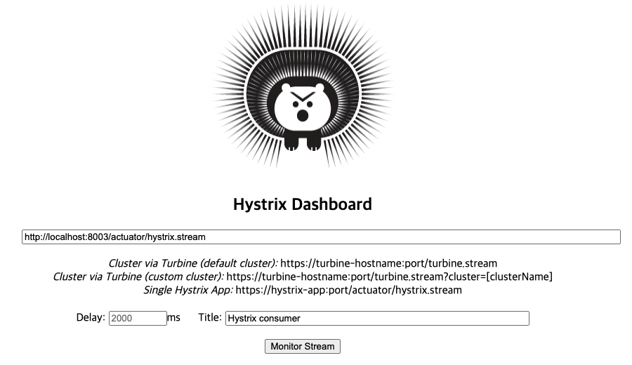 참고) Hystrix는 고슴도치라는 뜻입니다. 그래서 로고도 가시가 뻗어 있는 고슴도치입니다.