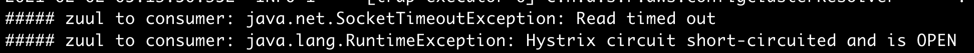 위 zuul-common.yaml의 설정대로라면, 10초 동안 1초를 초과한 응답이 50%이면 OPEN됩니다.