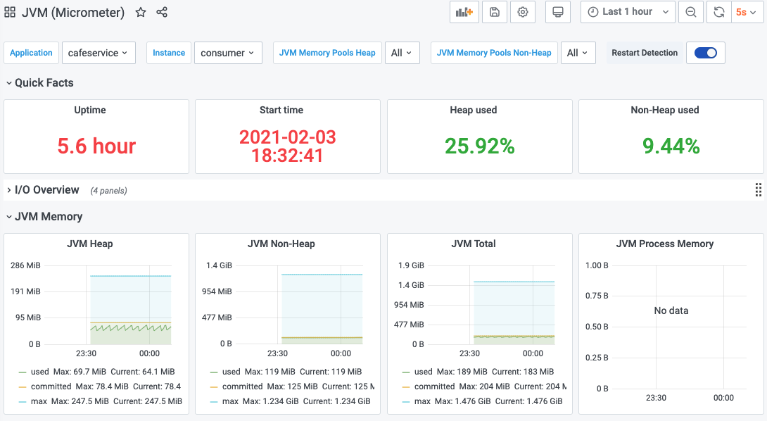 각 어플리케이션에는 Micrometer툴이 사용된 Actuator metric과 Prometheus client를 적용합니다.