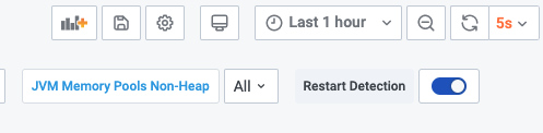 우측 상단에서 새로운 판넬 추가, 대시보드 저장, 대시보드 환경설정, view모드 변경, 시간 지정, 자동 갱신주기 조정을 할 수 있습니다.