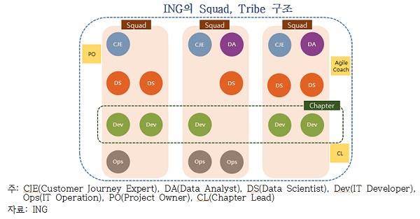◆ ING는 은행 최초로 애자일 방법론을 도입하는 등 디지털 혁신에 적극적인 회사로, 디지털 전환을 통해 기술회사로 거듭나기 위해 스포티파이, 구글 등 빅테크 기업을 적극 벤치마크