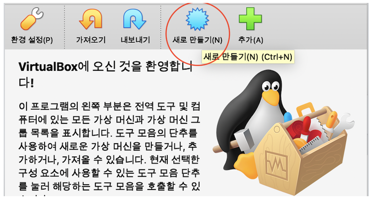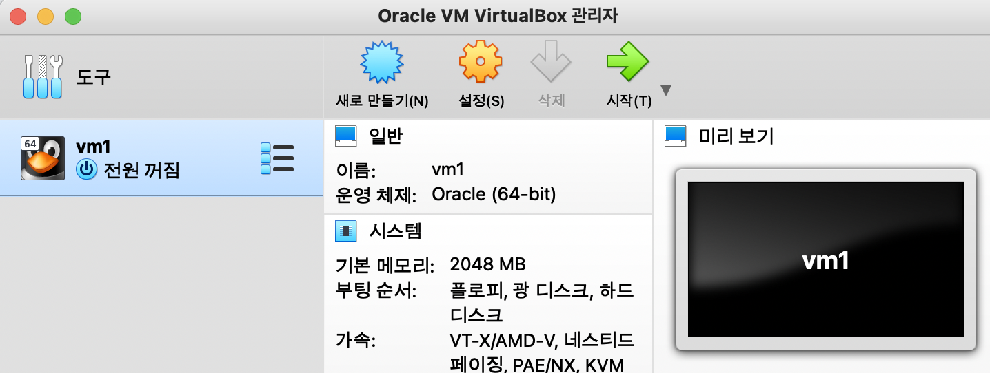 | Virtualbox 실행 | 설치한 virtualbox를 실행합니다. |