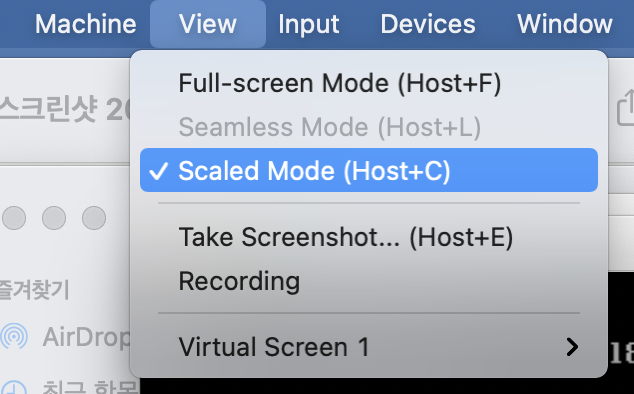 화면이 매우 작을겁니다. 아래와 같이 'Scaled Mode'로 변경하여, 화면을 크게 만드십시오.