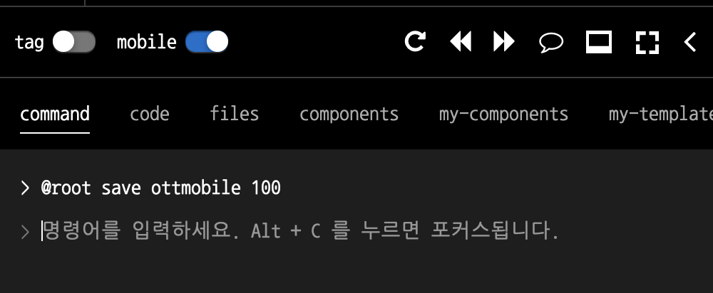수정후에는 하단의 Command창에 @{node} save {component category} {component number}를