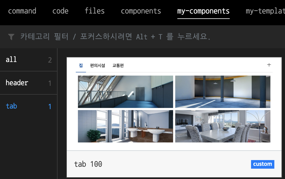my-components를 누르면 저장된 컴포넌트를 볼 수 있습니다.
