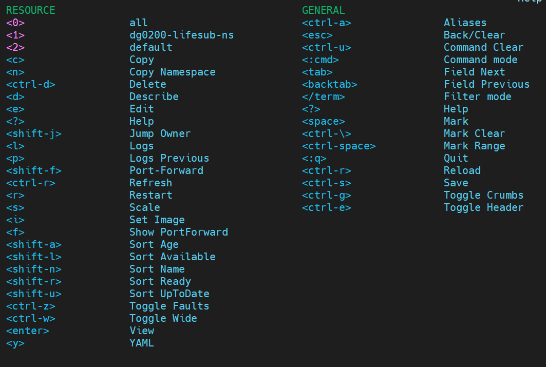 위 로고 왼쪽에 있는 단축키를 입력하여 선택된 Pod를 CRUD할 수 있습니다.