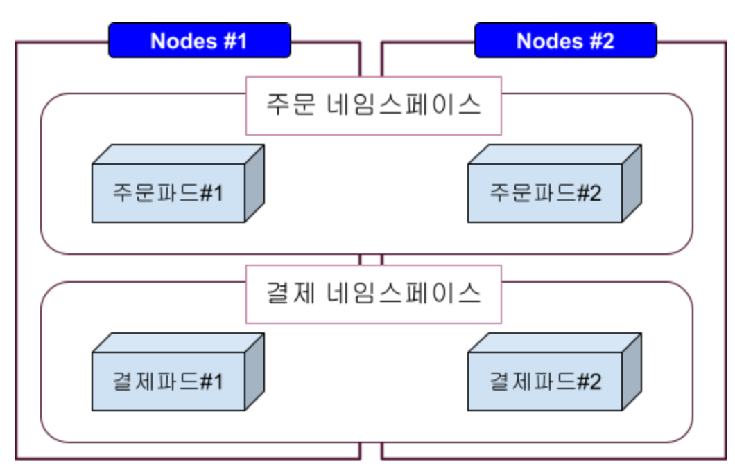 주문과 결제는 성격이 다른 업무서비스입니다. 파드끼리는 컨테이너화 되어 있기 때문에 상호 격리는 되어 있지만 성격이 다른 업무서비스가 섞여 있는것은 관리하기 힘듭니다.