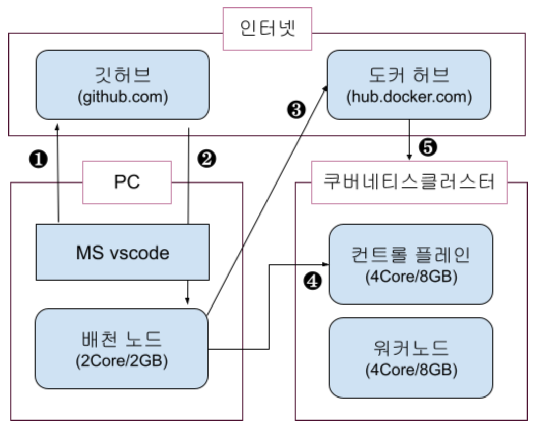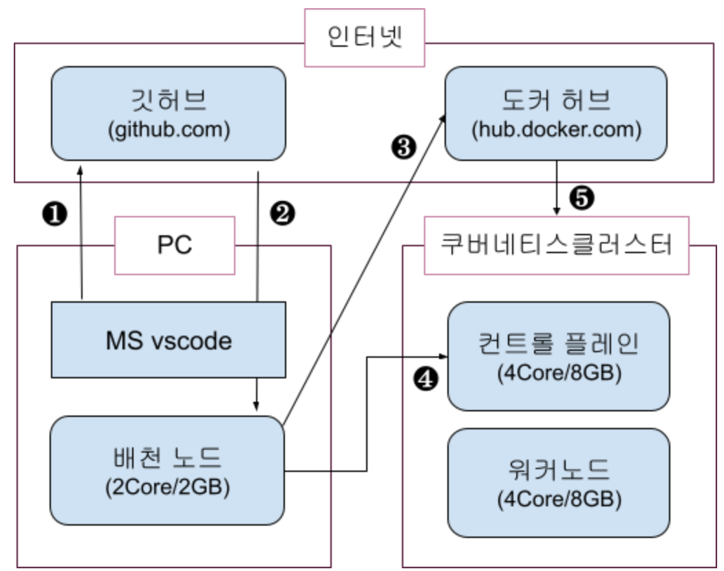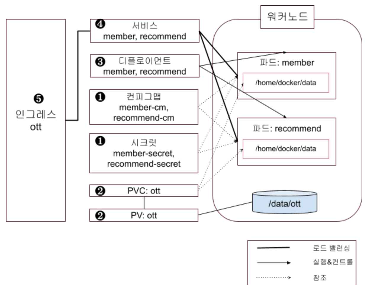 그럼 위 절차대로 member, recommend 어플리케이션을 컨테이너화 하여 쿠버네티스 오브젝트로 배포해 보겠습니다.