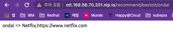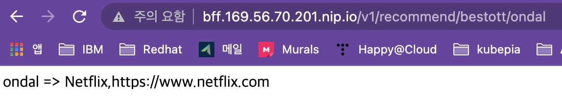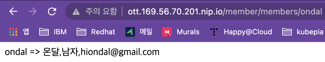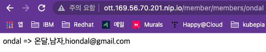 이제 정의한 인그레스 호스트와 경로로 ‘member’와 ‘recommend’ 애플리케이션이 동작하는지 테스트 하면 됩니다.
