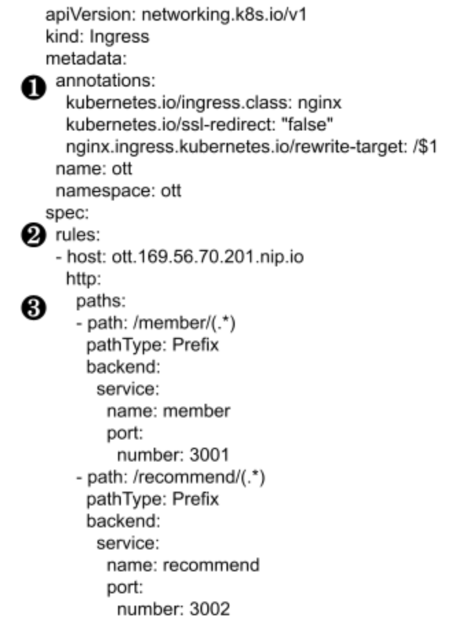 그리고 인그레스 ‘ott’의 야믈 내용을 mying.yaml파일로 만듭니다.