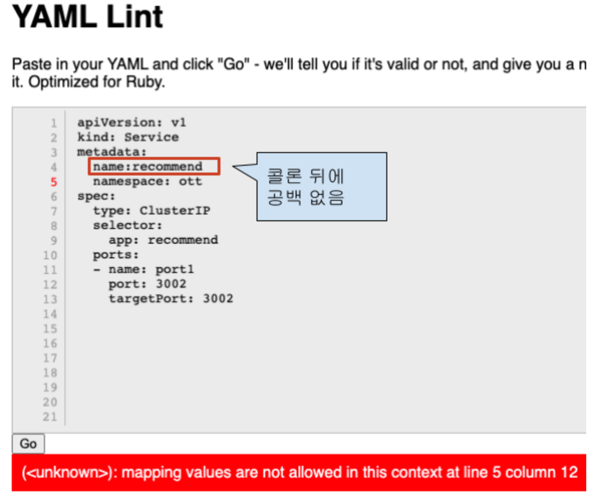 하지만 아쉽게도 쿠버네티스에서 정의되지 않은 키 이름이거나 값이 틀린 것까지는 검사하지 못합니다. 단순히 야믈 문법만 검사해 주는 페이지 입니다. 그래도 초기에는 도움이 좀 됩니다.