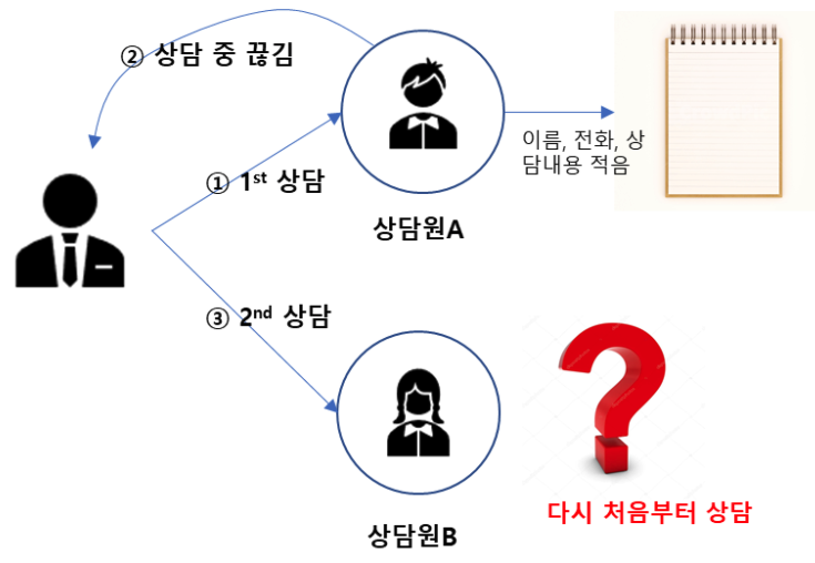 여러분이 콜센터에 전화로 상담하는 상황을 생각해 봅시다. 상담원A와 상담을 하다가 갑자기 전화가 끊겨서 다시 전화를 했더니 상담원B와 연결이 되었습니다. 상담원A가 본인의 노트에만 상담내용을 기록했다면, 상담원B는 다시 처음부터 상담을 시작해야 합니다.