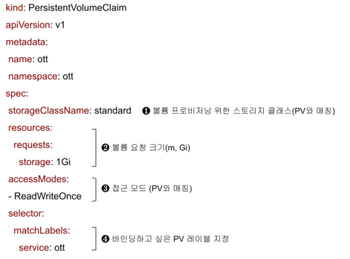 각 제품별 파드 명세에서 ‘volumes’ 항목을 참고하여 퍼시스턴트 볼륨을 만들면 됩니다.