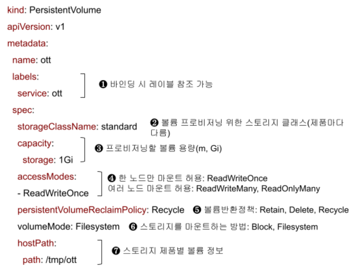 ❹ 스토리지 제품별로 퍼시스턴트 볼륨을 정의하여 볼륨을 접근할 수도 있습니다.