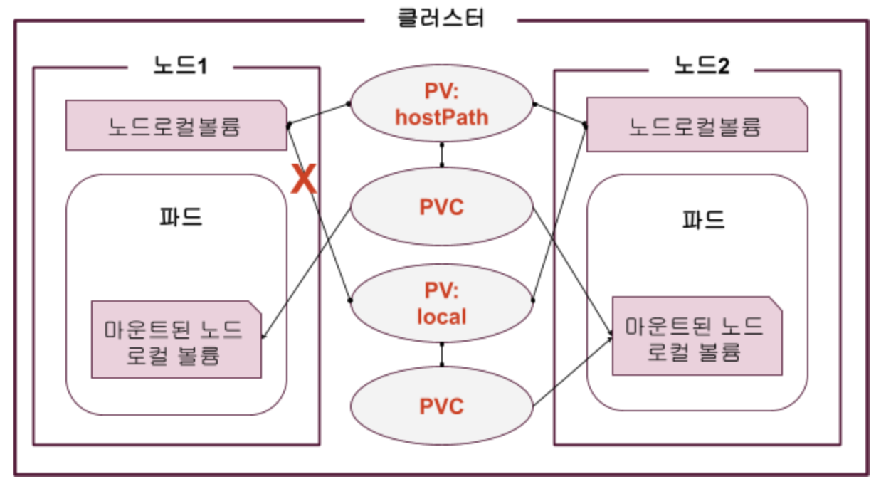 | 파드가 실행된 노드의 파일 접근 | N | 노드 로컬 볼륨 |