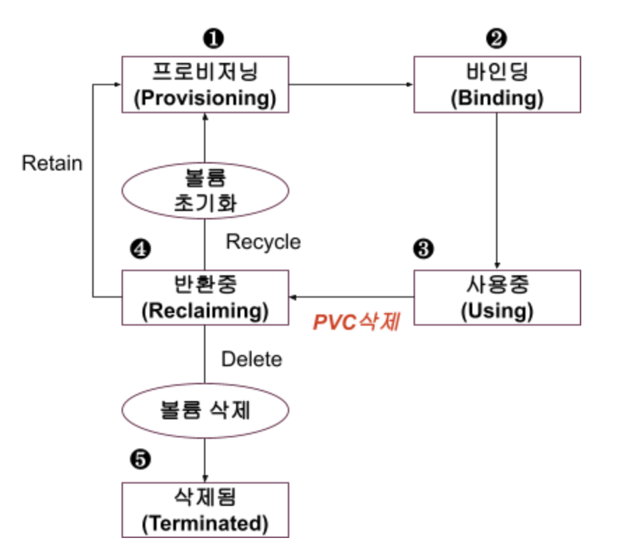 퍼시스턴트 볼륨의 생성부터 소멸까지의 라이프 사이클은 아래와 같습니다.