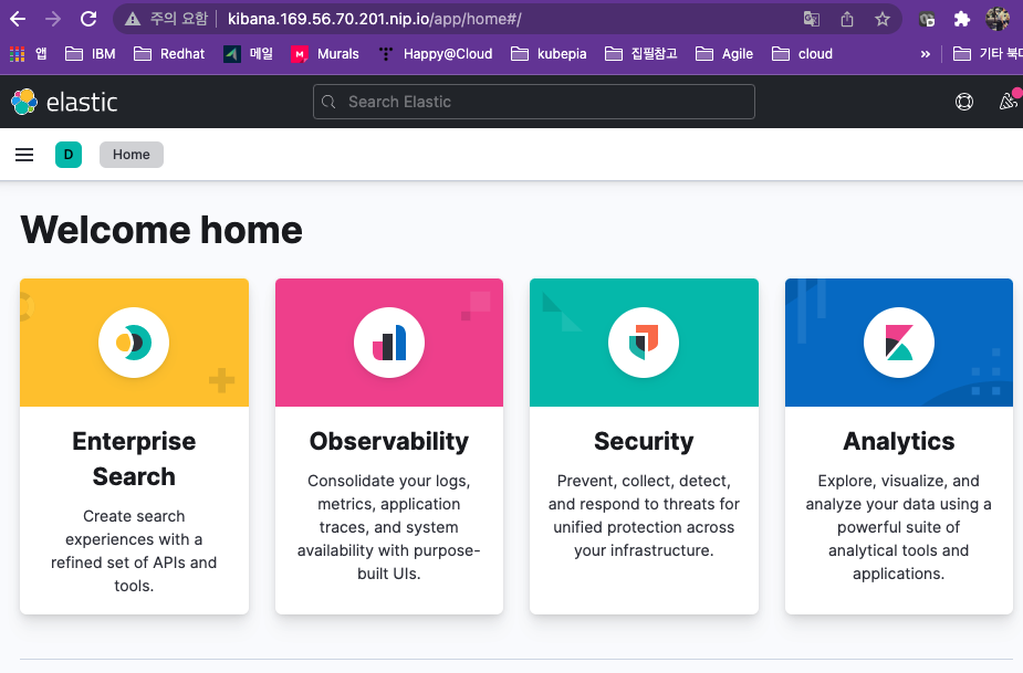 마지막으로 수집된 로그를 키바나를 통해 조회하고 검색하는 실습을 하도록 하겠습니다.