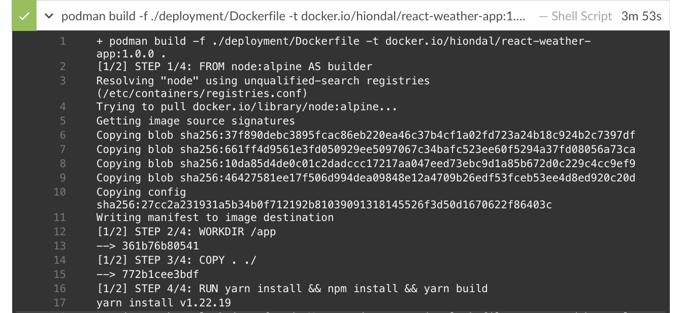 sh "podman build -f ./deployment/Dockerfile-cicd -t ${registry}/${organization}/${repository}:${tag} ."