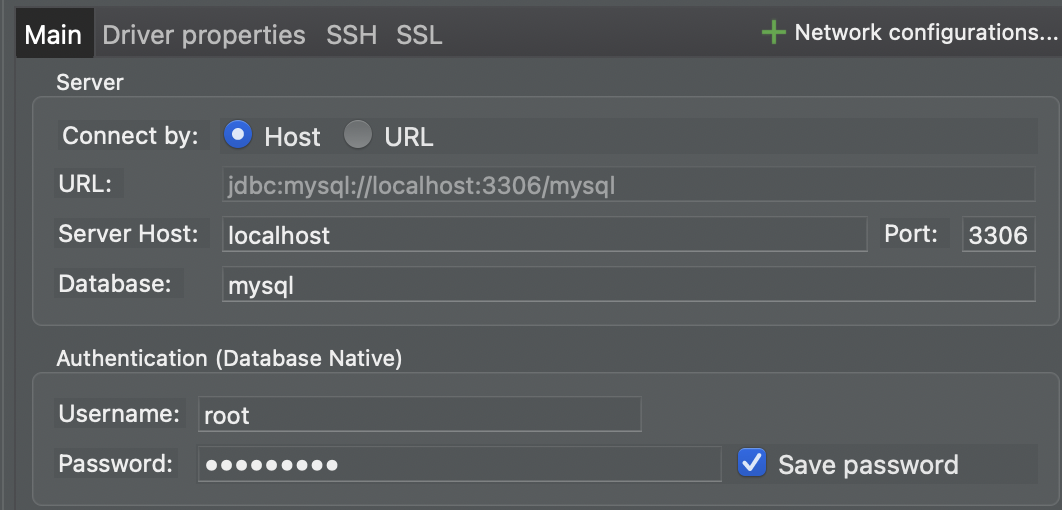 - Server Host, Port, Database, username, Password를 입력합니다.
