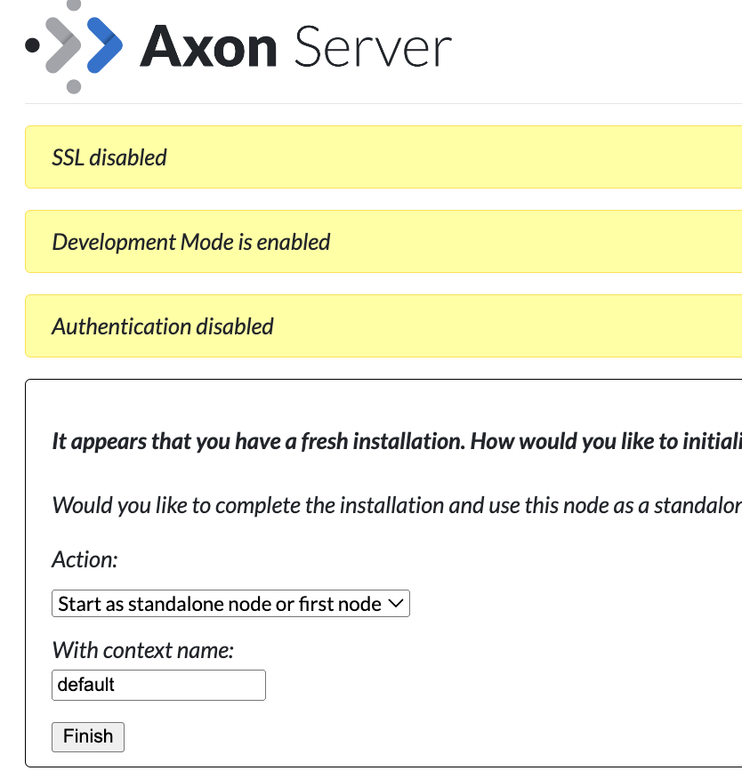 실행 시 'axoniq.axonserver.devmode.enabled=true'로 했기 때문에 아래 [Reset Event Store]버튼이 보입니다.