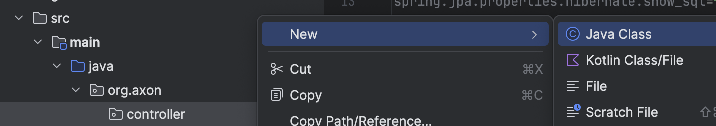 package 'org.axon.entity'를 만들고 하위에 'Entity'라는 class를 만듭니다.