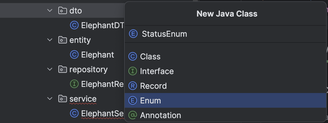 코끼리 상태 코드를 위한 StatusEnum class를 만듭니다.