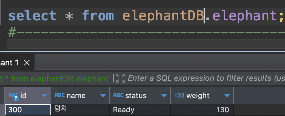 DBeaver에서 코끼리의 상태를 확인해 보십시오.