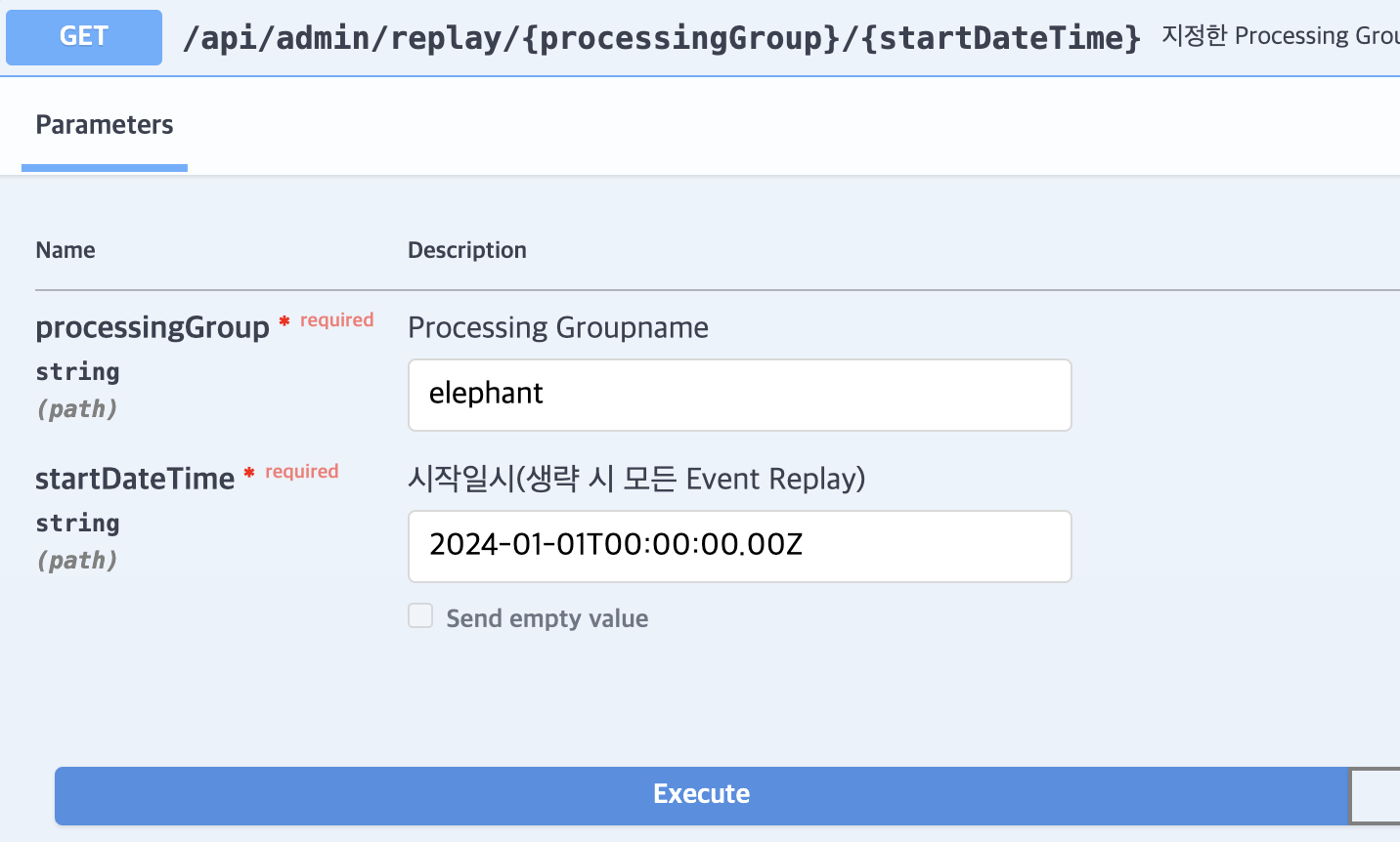 이제 Event Replay 요청 API가 하단에 표시될겁니다.