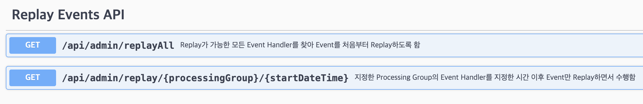- ReplayEventsController: 지정한 Event Handler에 대해 특정 일시 이후의 Event만 Replay함
