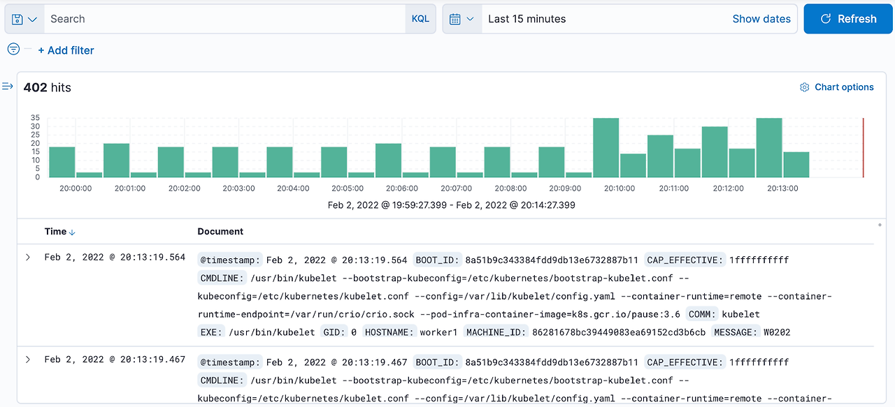 아래와 같이 거의 실시간으로 로그가 수집되는걸 볼 수 있습니다.