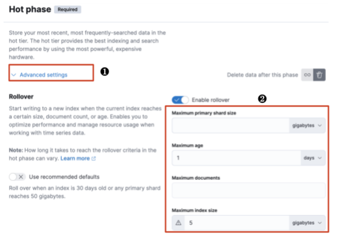 Index 보관 주기를 바꾸지 않으면 기본 설정대로 90일 후에나 로그가 삭제되므로 저장공간이 모자랄 수 있습니다.