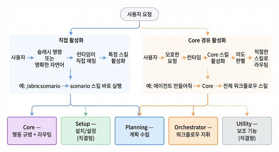 스킬 활성화 경로 — 직접 호출과 Core 경유