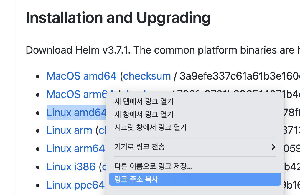 압축을 해제하고, 실행파일 'helm'을 PATH가 설정된 디렉토리로 복사합니다.
