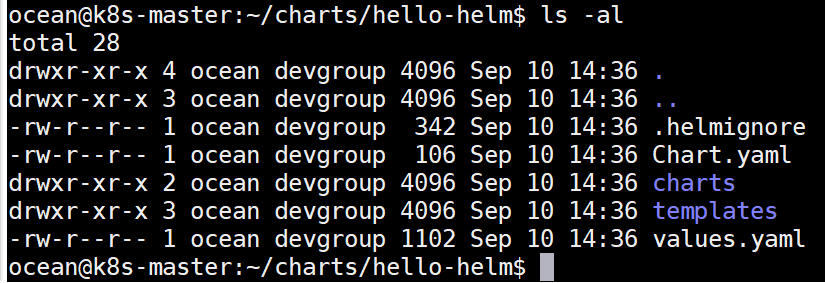 helm은 편의를 위해 아래 명령으로 chart의 기본 구조를 만들어 줍니다.