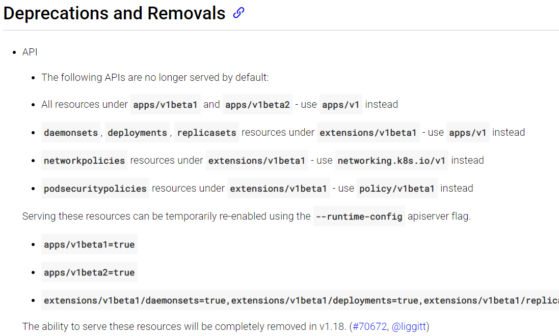 kubernetes v1.16버전이 나오면서 더 이상 지원되지 않는 API(예:extentions/v1beta1)들이 있습니다.